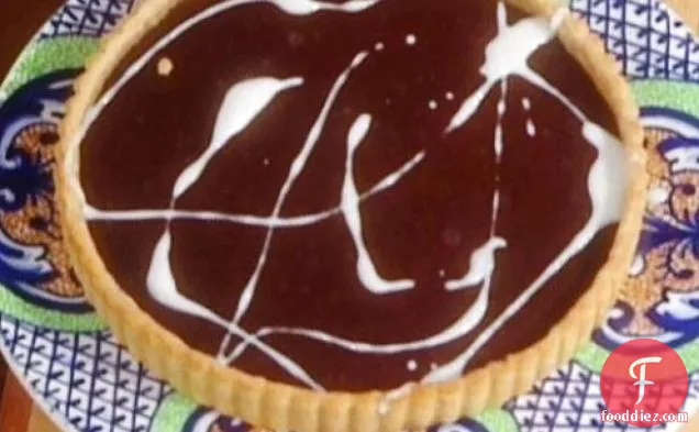 मिश्रण को तीखा खोल में डालें और 375 डिग्री फ़ारेनहाइट पर 15 मिनट के लिए बेक करें, जब तक कि चॉकलेट एक चमकदार त्वचा न बना ले और थोड़ा सख्त हो जाए लेकिन केंद्र में सेट न हो जाए । 15 मिनट तक ठंडा करें, फिर टार्ट को पैन से पूरी तरह से ठंडा होने के लिए हटा दें ।