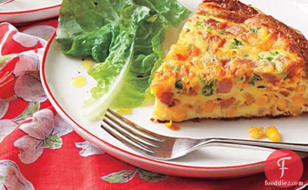 मकई, हैम और स्कैलियन फ्रिटाटा