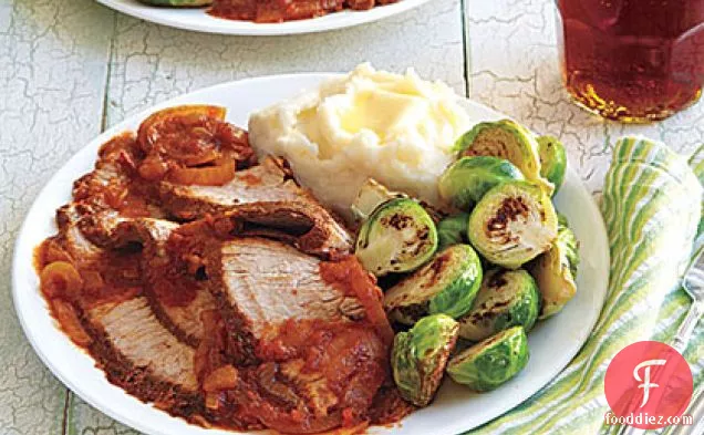 धीमी कुकर से ग्रेवी निकालें । अनाज के खिलाफ मांस का टुकड़ा और ग्रेवी के साथ परोसें ।