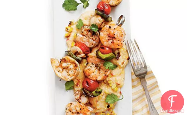 ग्रिल्ड झींगा और स्मोकी ग्रिल्ड-कॉर्न ग्रिट्स