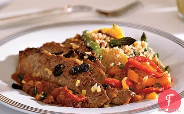 जैतून और संरक्षित नींबू के साथ ब्रिस्केट