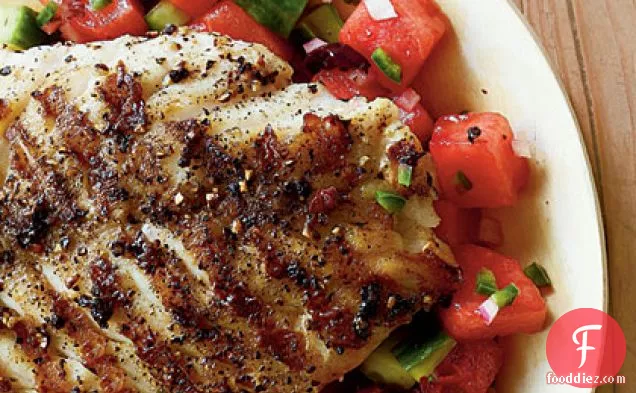 तरबूज साल्सा के साथ ग्रील्ड ग्रूपर