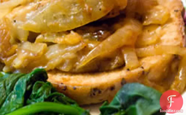 प्याज भरने के साथ भुना हुआ सूअर का मांस