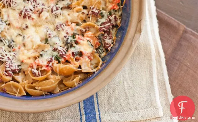 बकरी पनीर और स्विस चार्ड पास्ता पुलाव