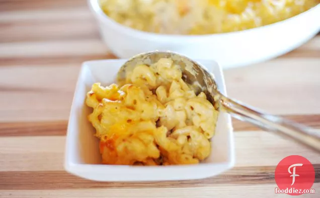 तुरंत (बहुत मलाईदार) परोसें या मक्खन लगी बेकिंग डिश में डालें, ऊपर से अतिरिक्त चीज़ डालें, और 20 से 25 मिनट तक या ऊपर से चुलबुली और सुनहरा होने तक बेक करें ।