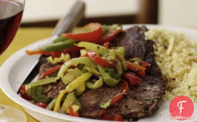 मेमने चार मिर्च और अखरोट के कूसकूस के साथ स्टेक करते हैं