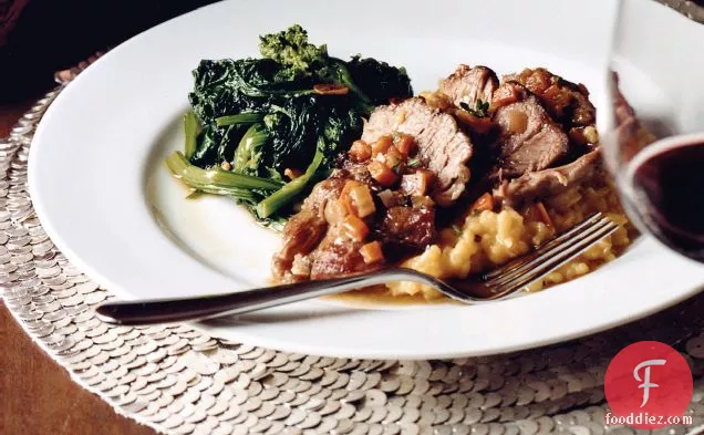 गर्मी से रिसोट्टो निकालें और शेष 2 बड़े चम्मच मक्खन और पनीर में हलचल करें । रिसोट्टो को नमक और काली मिर्च के साथ सीज़न करें और परोसें ।