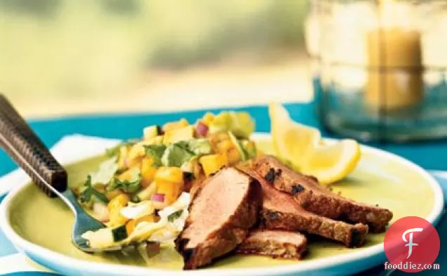 मसालेदार अमरूद शीशे का आवरण के साथ पोर्क टेंडरलॉइन