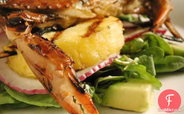 वॉटरक्रेस के साथ ग्रील्ड सॉफ्ट-शेल केकड़ा और अनानास सलाद