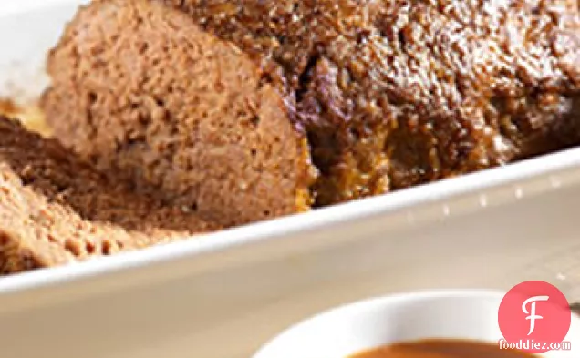 मिश्रण को 13 एक्स 9 एक्स 2-इंच बेकिंग पैन में रखें और दृढ़ता से 8 एक्स 4-इंच रोटी में आकार दें ।